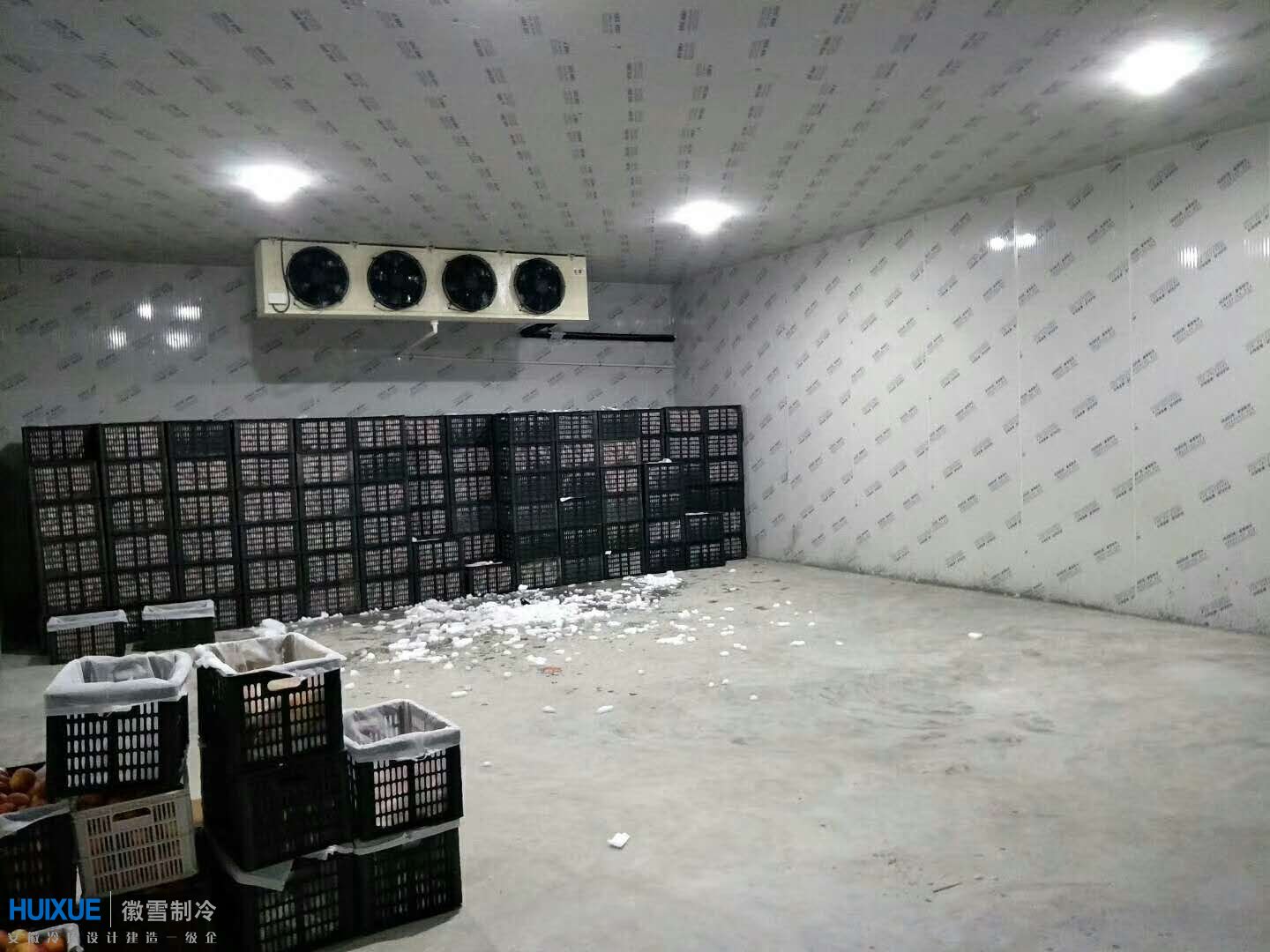 本次為滁州云伙計電子商務集團有限公司設計安裝建造的為座冷凍庫和座保鮮庫,冷庫總容積達400立方。冷庫主要用來儲藏生鮮冷凍食品,其中冷凍庫設計溫度-20℃,保鮮冷庫設計溫度-5℃。