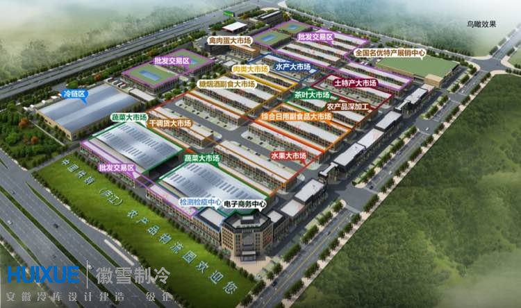 本次為中供銷(廬江)農產品物流園設計建造為4座冷庫,其中2座-18℃冷凍庫和2座-15℃保鮮冷庫。冷庫保溫系統(tǒng)采用徽雪自主研發(fā)生產的"HUIXUE"雙面彩鋼聚氨酯冷庫保溫板,制冷設備采用美艾默生谷輪風冷制冷機組。控制系統(tǒng)采用“HUIXUE"PLC微電腦物聯(lián)網控制系統(tǒng)。