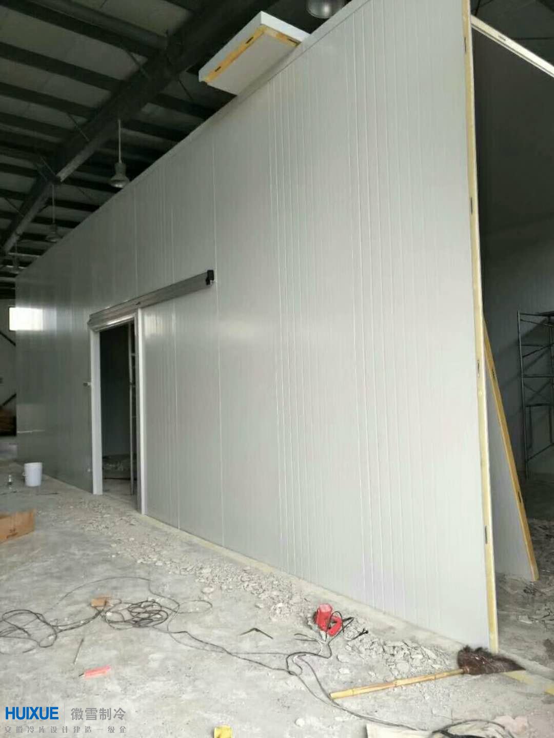 本次為合肥豐大種業(yè)股份有限公司設(shè)計建造的為座400立方種子儲藏冷庫,冷庫設(shè)計尺寸為:13000MM*6600MM*4500MM。冷庫設(shè)計溫度0度。冷庫制冷設(shè)備采用進口丹麥丹佛斯風(fēng)冷制冷機組,冷庫保溫系統(tǒng)采用徽雪自主研發(fā)生產(chǎn)的"HUIXUE"B2防火100MM厚聚氨酯冷庫保溫板。目前該冷庫交付用戶使用數(shù)月,客戶反映設(shè)備運行穩(wěn)定。
