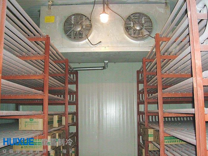 該速凍冷庫設(shè)計(jì)溫度-35度主要用來速凍魚丸。為了保證速凍效果和速凍產(chǎn)品的質(zhì)量和客戶商議后蒸發(fā)器采用32MM無縫鋼管排管和DJ冷風(fēng)機(jī)組合形式。制冷壓縮機(jī)組采用德比澤爾半封閉水冷雙壓縮制冷機(jī)組(考慮到制冷機(jī)組運(yùn)行蒸發(fā)溫度較低,為了提高設(shè)備運(yùn)行的能效比制冷機(jī)組安裝經(jīng)濟(jì)器),采用R404環(huán)保無氟制冷劑。目前該設(shè)備已經(jīng)投入使用,速凍日產(chǎn)量達(dá)15T,速凍產(chǎn)品質(zhì)量好。
