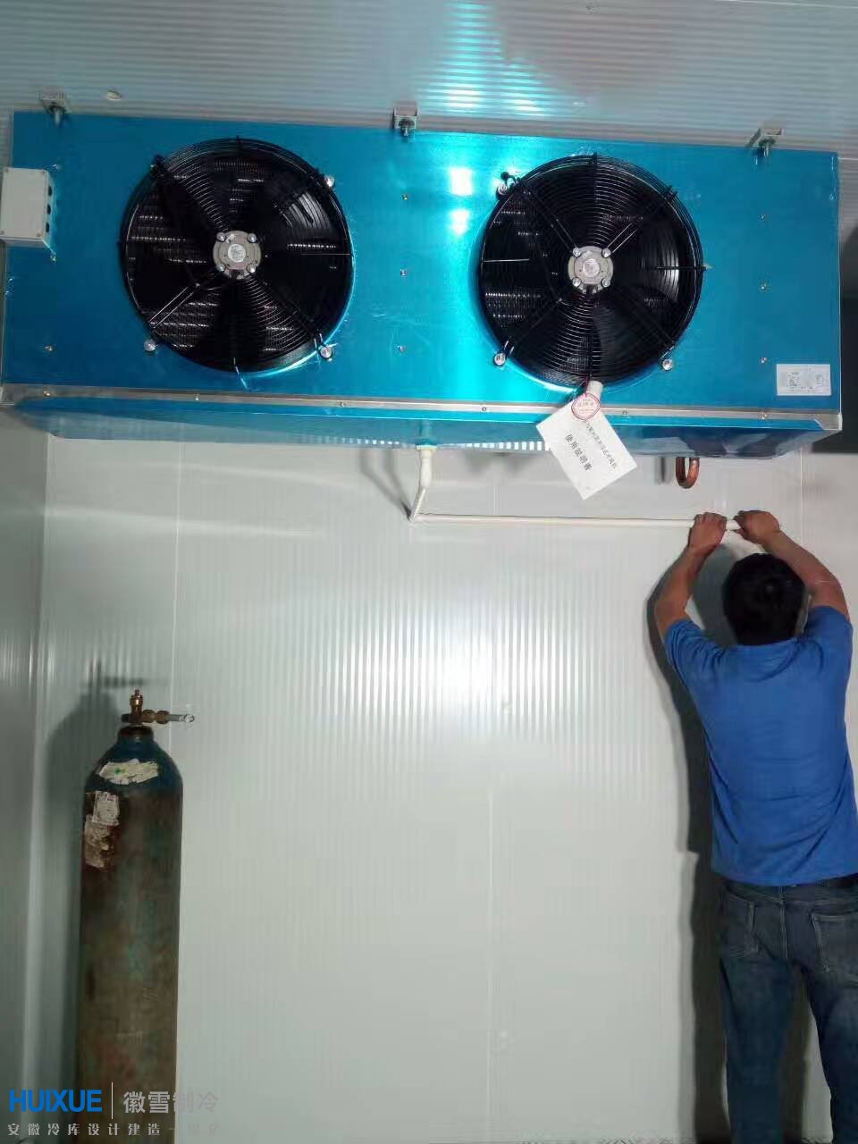 本次為滁州匯力食品有限公司設(shè)計建造的二期冷庫為座保鮮庫,冷庫尺寸規(guī)格為:11000MM*8000MM*4000MM,冷庫設(shè)計溫度為0~5℃。冷庫主要用來儲藏香菇、木耳等干貨。冷庫保溫系統(tǒng)采用100MM厚雙面彩鋼聚氨酯冷庫保溫板,制冷設(shè)備采用美艾默生谷輪風(fēng)冷制冷機(jī)組。
