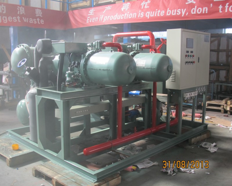 合肥雨潤食品320HP低溫2并聯(lián)螺桿冷庫制冷機組安裝,冷庫制冷機