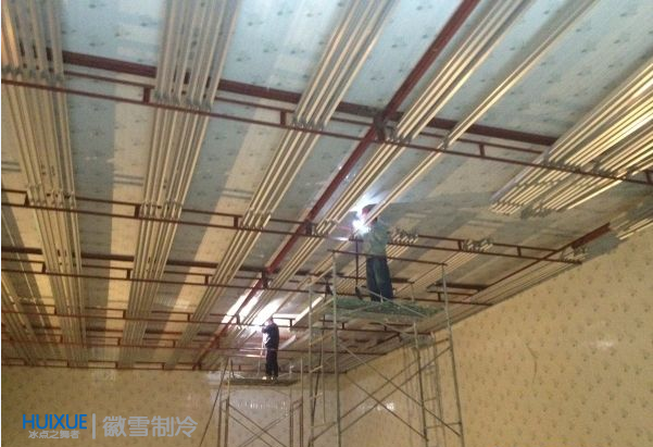 為什么有冷庫工程項目的安裝得又快鋁排管又排布整齊呢?這是因為在吊掛鋁排時,應該在冷庫庫頂保溫板下面安裝小梁。鋁排的穿桿與小梁用雙頭鉤掛在起,這樣能夠保證快速安裝好而且鋁排排布平整均勻。