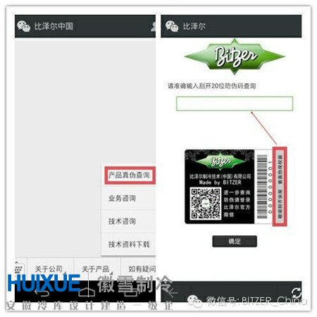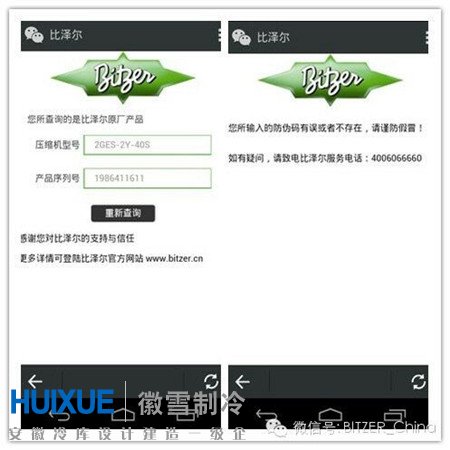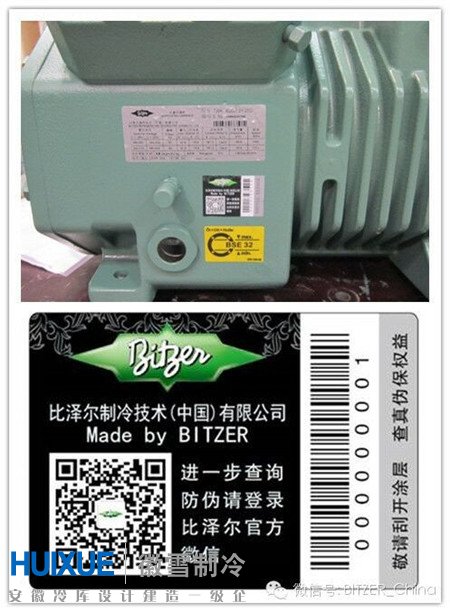 比澤爾壓縮機(jī)上有正規(guī)的銘和鋼印號(hào),能夠?qū)?yīng)。公司面對(duì)日益嚴(yán)重的山寨機(jī)市場,比澤爾公司近期推出了半封閉壓縮機(jī)新版防偽標(biāo)識(shí)。從2014年5月5日開始,購買比澤爾半封活塞壓縮機(jī)的客戶可以通過比澤爾官方微信,輸入防偽標(biāo)識(shí)中的20位防偽碼,查詢產(chǎn)品真?zhèn)巍?br />