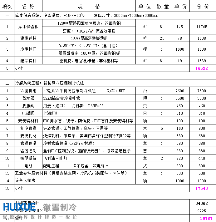 如您需要了解詳細(xì)冷庫價(jià)格,可致電安徽徽雪制冷設(shè)備工程有限公司4006553598,我們會(huì)給出詳細(xì)的冷庫報(bào)價(jià)清單和設(shè)計(jì)方案。